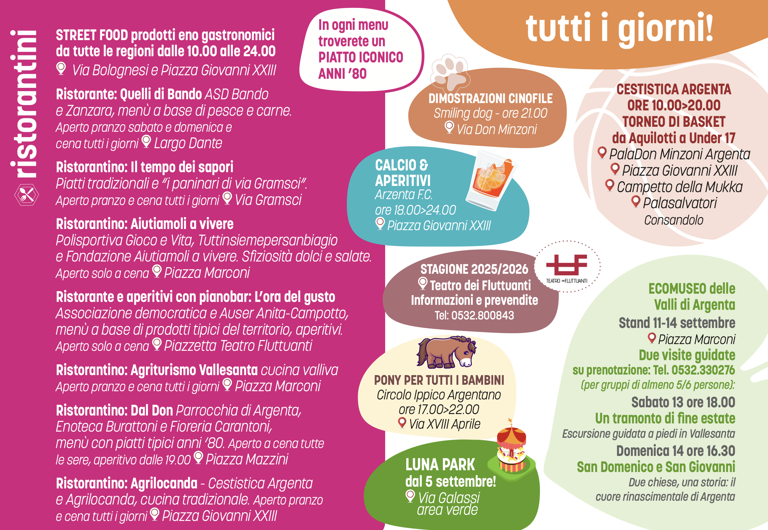 Una manifestazione che unisce cultura, gusto e divertimento, capace di coinvolgere l’intera comunità e i tanti visitatori attesi, promossa dal Comune di Argenta insieme alla Pro Loco Argenta.