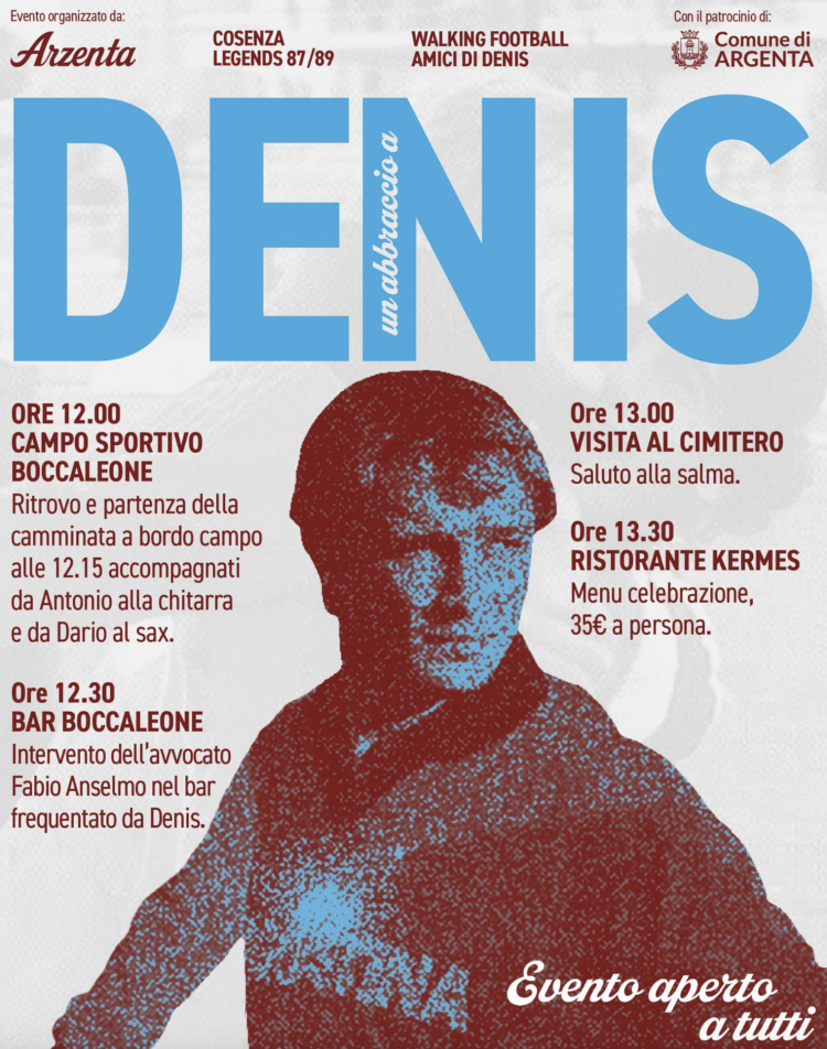 Per l’occasione arriveranno a Boccaleone i compagni di squadra e i dirigenti che hanno condiviso con Denis il percorso calcistico, dagli esordi sul campo di Boccaleone fino alla Serie B, dove militava con il Cosenza Calcio.